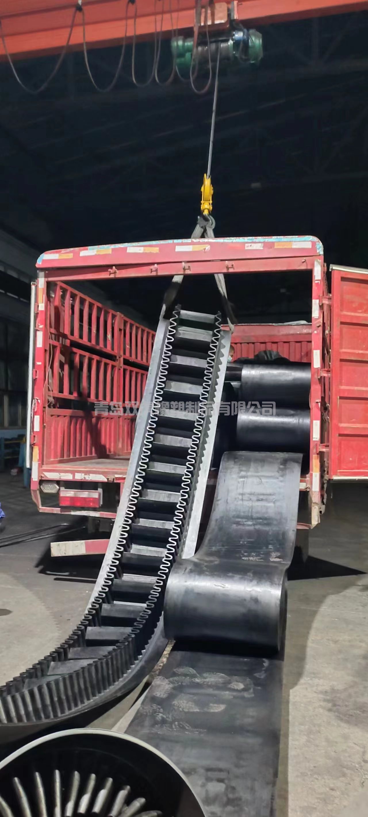 超耐磨大倾角挡边输送带 横向加强XE布大倾角挡边输送带生产完成